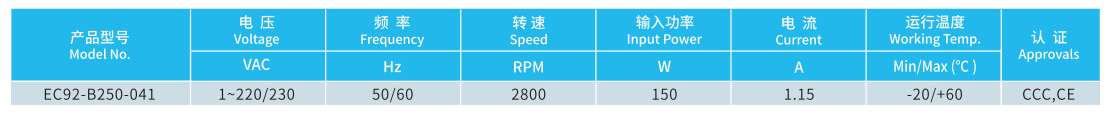 | 產(chǎn)品型號 | EC92-B250-041 |