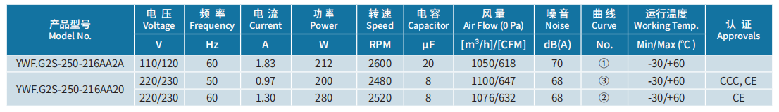 | 產品型號 | YWF.G2S-250-216AA2A |