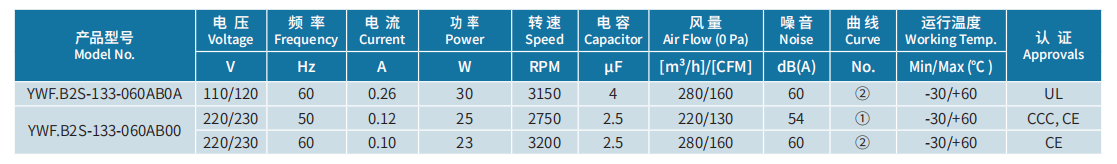 | 產(chǎn)品型號 | YWF.B2S-133-060AB0A |
